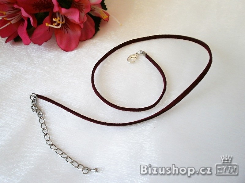 Náhrdelník kožený v bavě bordové. Délka 46 cm, šířka 3 mm. K návleku přívěsků a korálků.