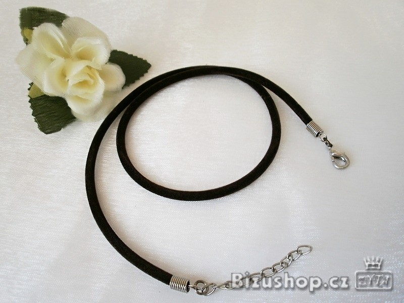 Náhrdelník, Šnůrka sametová kulatá, černá 20023Náhrdelník, Šnůrka sametová kulatá. Pevná šnůrka . Délka 42 cm + 5 cm prodloužení. průměr 3 mm. zapínání karabinka, Povrch úprava kovových částí, starostříbro.