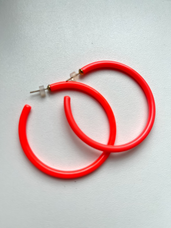Náušnice plastové kruhy oranžové 1057Náušnice kruhy plastové oranžové průměr 5,5 cm, šířka 4 mm.