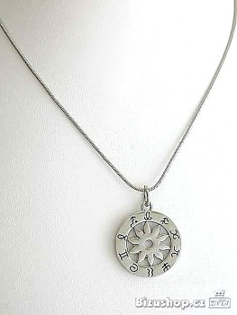 Řetízk s krásně spracovaným přívěskem  ve větším kruhu umístěn motiv růže větru, který je bohatě zdoben štras kamínky v barvě světle zelené. Nádherně zpracovaný přívěsek s originálním vzorem