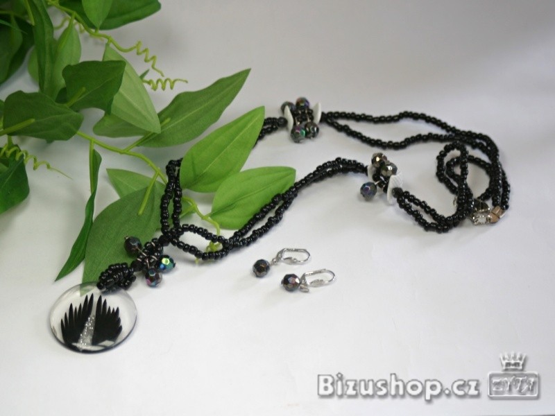 Souprava černá Náhrdelník a náušnice 2620Souprava náušnic a dlouhých korálů s černými korálky a kulatým plastovým přívěskem, mušle.. Dostupná cena, levný dárek. V případě, že Vaše objednávka překročí 300 kč bez poštovného obdržíte dárek v hodnotě 100 kč.