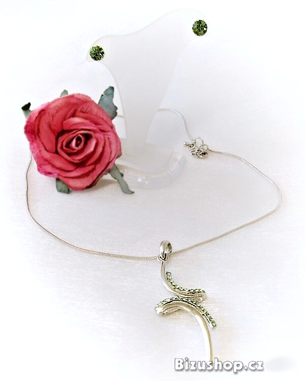 Set bižuterie . Hadový řetizek s přívěskem zajímavého tvaru a jedno kamínkové náušnice . Broušené skleněné kameny v zelené barvě. Dostupná cena, levný dárek. V případě, že Vaše objednávka překročí 300 kč bez poštovného obdržíte dárek v hodnotě 100 kč.