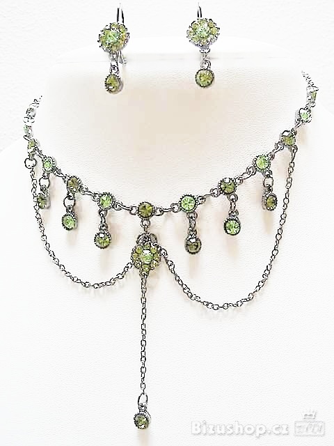 Set v tmavé povrchové úpravě kovu starostříbro se štras kameny v zelené barvě ve tavaru kytiček. Dostupná cena, levný dárek. V případě, že Vaše objednávka překročí 300 kč bez poštovného obdržíte dárek v hodnotě 100 kč.