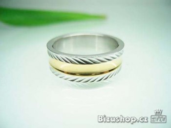 Šířka prstenu 7mm . Zlatnická míra – velikost 60 . Snubní prsten Jasmine z chirurgické oceli zdobený zlatou barvou střední části obvodu prstenu. Zlatnické míry, 60,63,66. .Prstýnek z Chirurgické oceli.Cenově dostupný. Oblíbený pro svoje vlastnosti. Odolnost proti korozi. Barevná stálost. Vyjímečná tvrdost . Plnohodnotně nahradí drahé kovy.